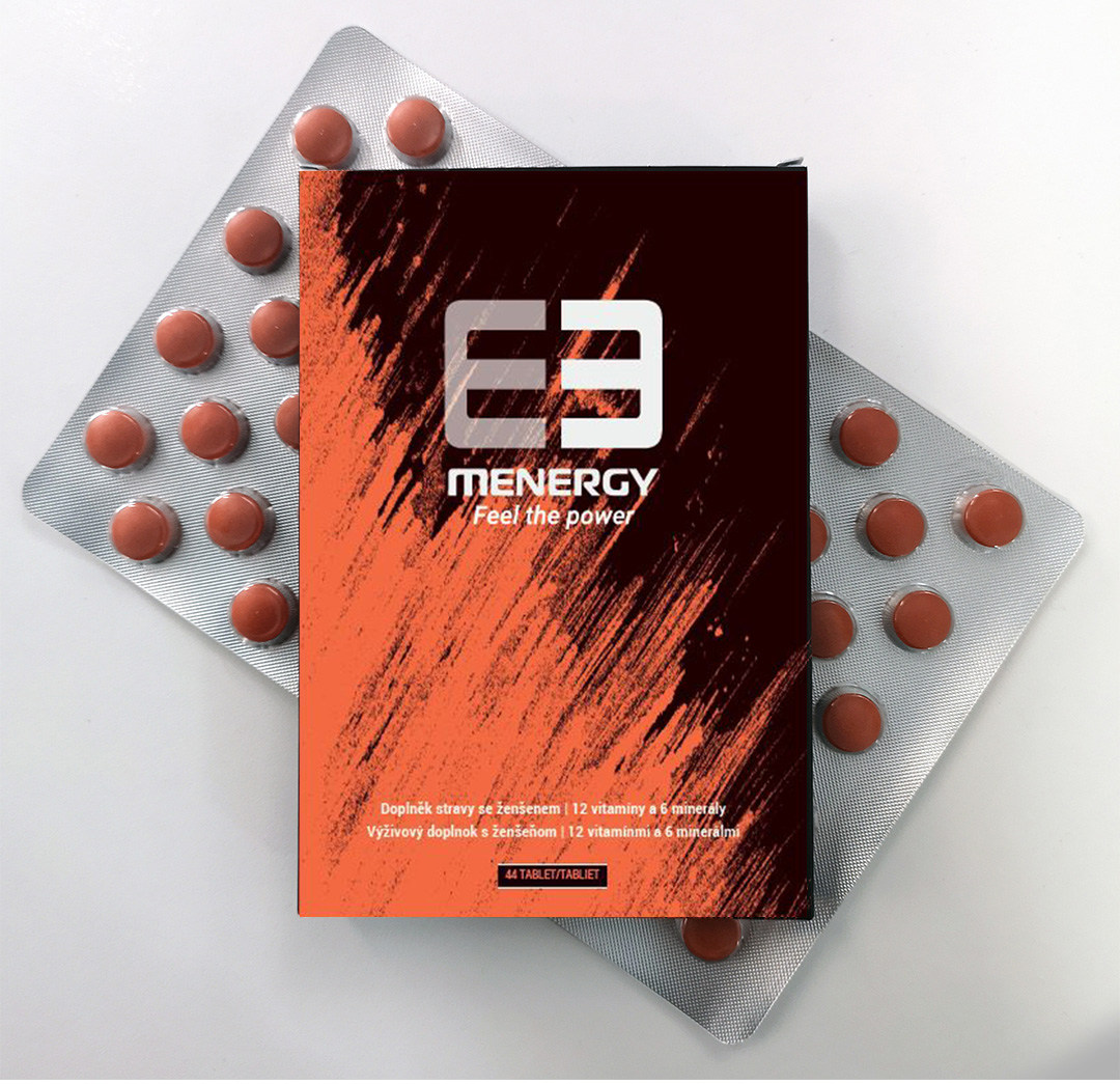 Menergy je vaše energetická tableta se ženšenem a také minerály a vitamíny, které jsou pro nás v každodenním životě nejdůležitější. Menergy obsahuje celkem 12 vitamínů, 9 minerálů a 8 mg ginsenosidů, které přispívají ke snížení únavy a vyčerpání a také k udržení imunitního systému.